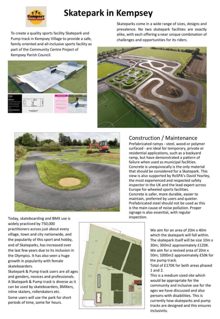 This Monday at 7pm, Kempsey Parish Council (KPC) will be meeting to vote on whether the tender document for the pump track is approved.